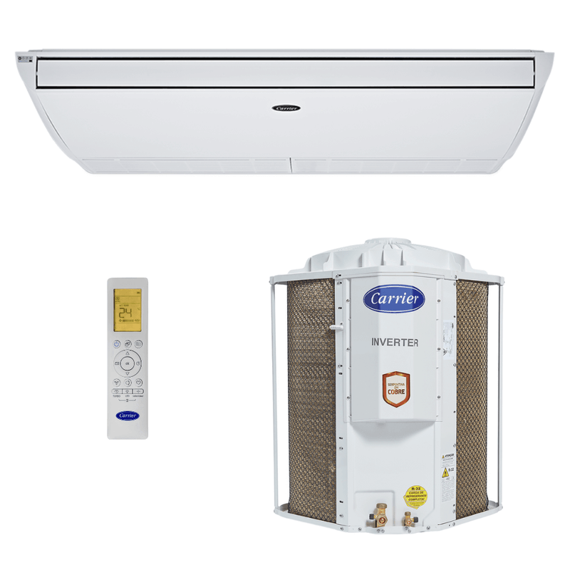 Climatize grandes ambientes comerciais com a máxima eficiência e controle inteligente. O Ar Condicionado Piso Teto Xpower Inverter Connect da Carrier oferece 60.000 BTUs de capacidade (ciclo Frio) e tecnologia avançada para garantir conforto térmico superior e praticidade no seu negócio.