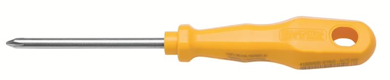Haste em aço especial temperado. Acabamento niquelado. Ponta cruzada. As hastes das chaves de fenda são testadas em máquinas de ensaio específicas, para verificar o perfeito balanço entre resistência mecânica e dureza. Cabos injetados com material de alta resistência. Os dimensionais das pontas são verificados comgabaritos-padrão, calibrados e certificados. As ferramentas são produzidas e testadas conforme normas específicas.