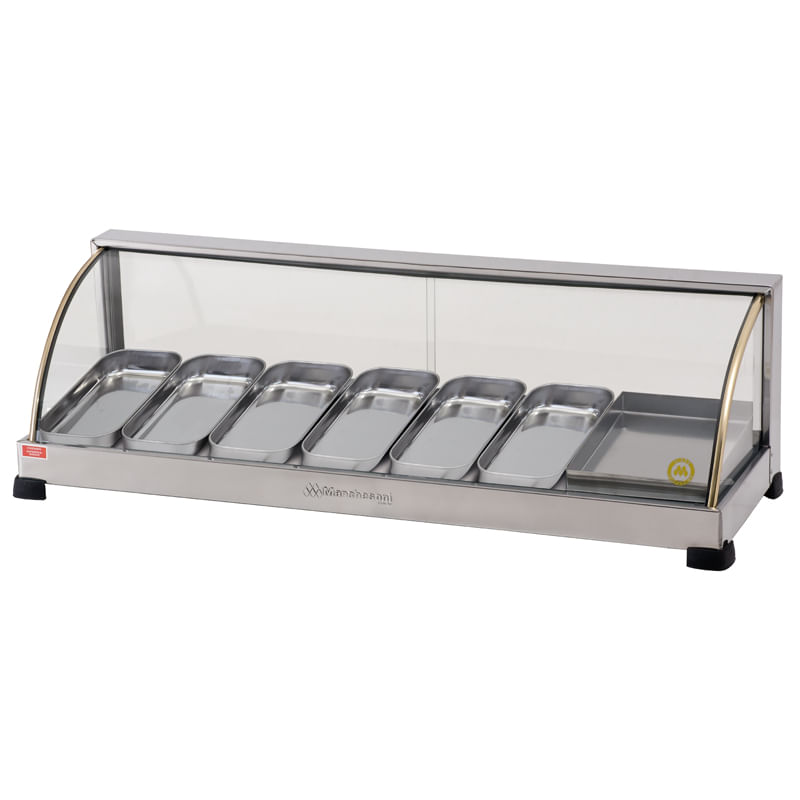 A Estufa Ouro Marchesoni com 7 Bandejas oferece mais espaço para exibir uma maior variedade de salgados e quitutes, sem comprometer a qualidade e o estilo. Ideal para padarias, lanchonetes e buffets, ela é sinônimo de praticidade e elegância.