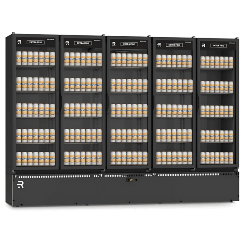 Com gabinete interno e externo em aço galvanizado pintado, o equipamento oferece alta durabilidade e acabamento refinado. As cinco portas de vidro temperado facilitam o acesso e proporcionam ampla exposição dos produtos, enquanto o controlador digital garante precisão na regulagem da temperatura.