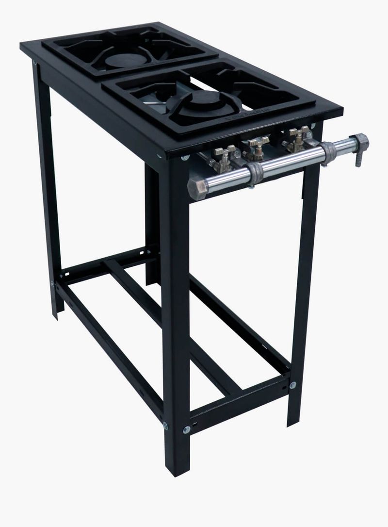 Opção de queimadores simples de 100m de diâmetro ou duplos de 160mm, de fácil remoção para limpeza e manutenção; Todos os modelos a partir de 4 bocas podem ser produzidos para centro de cozinha; Produzidos até o tamanho de 8 bocas, acima deste, somente com módulos;