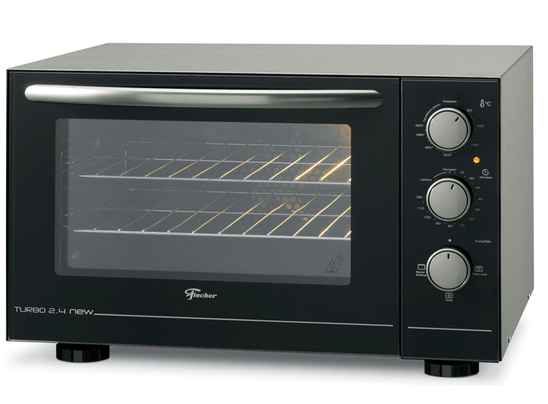 O novo Forno Elétrico Fischer Turbo 2.4 New de bancada com 48 litros de capacidade traz uma abordagem moderna para uma linha tradicional. Este modelo turbo oferece três funções de cozimento para otimizar o tempo de preparo dos alimentos. Ele possui controle preciso de temperatura, timer programável, luz interna e luz piloto para facilitar o monitoramento, bem como um design moderno com acabamento em alumínio anodizado escovado no puxador. A versatilidade, a facilidade de limpeza e a eficiência tornam-no uma adição valiosa para qualquer cozinha.