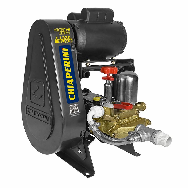 A Lavadora Chiaperini LJ 330 BLACK traz um potente motor de 2 HP com 4 polos, atingindo até 300 lbf/pol² (≈ 20,7 bar) de pressão e 20 L/min de vazão — ideal para remoção de sujeiras pesadas com eficiência.