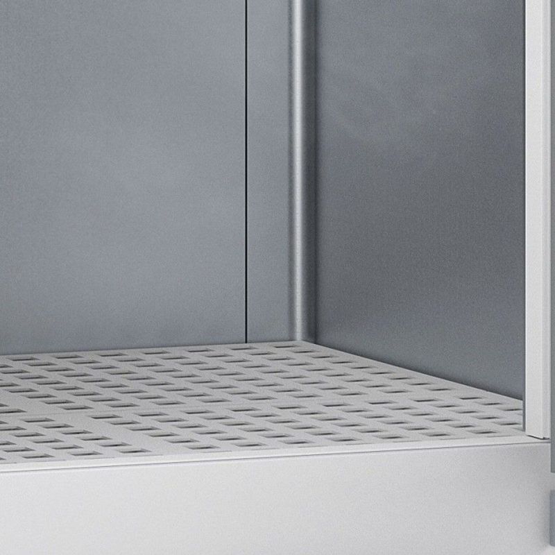 Fabricada com gabinete monobloco, revestimento externo em aço pré-pintado e porta cega, a estrutura garante resistência, durabilidade e maior eficiência térmica. Conta ainda com estrado de PVC na base e pés niveladores para facilitar a instalação.