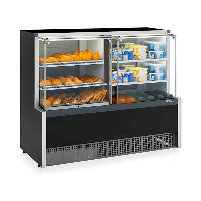 A Vitrine Expositora Quente e Fria Gelopar GQRA-140R é a solução ideal para conservar e expor uma variedade tentadora de bolos, tortas, doces, confeitos e bebidas refrescantes, frios e laticínios. Com refrigeração estática e aquecimento por resistência blindada, esta vitrine é multifuncional e versátil, proporcionando condições ideais para manter os alimentos frescos ou aquecidos.